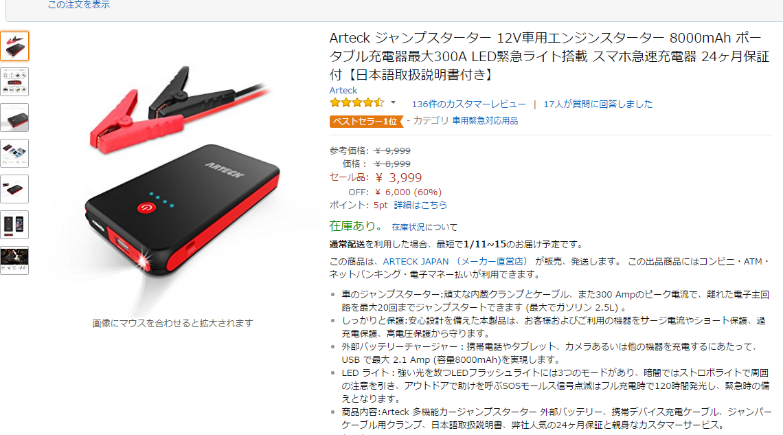 寒い寒いって独り言呟きながら、とっとと用事を済ませようって数日ぶりにクルマに乗ってキーをまわすとコレが何ともキュッ……キュッゥゥゥゥとか情けない音がして沈黙、バッテリーがチカラ尽きているんです。幸い去年モバイルバッテリーなるものをポチっていたもんで使ってみるとあっさりエンジンかかる、